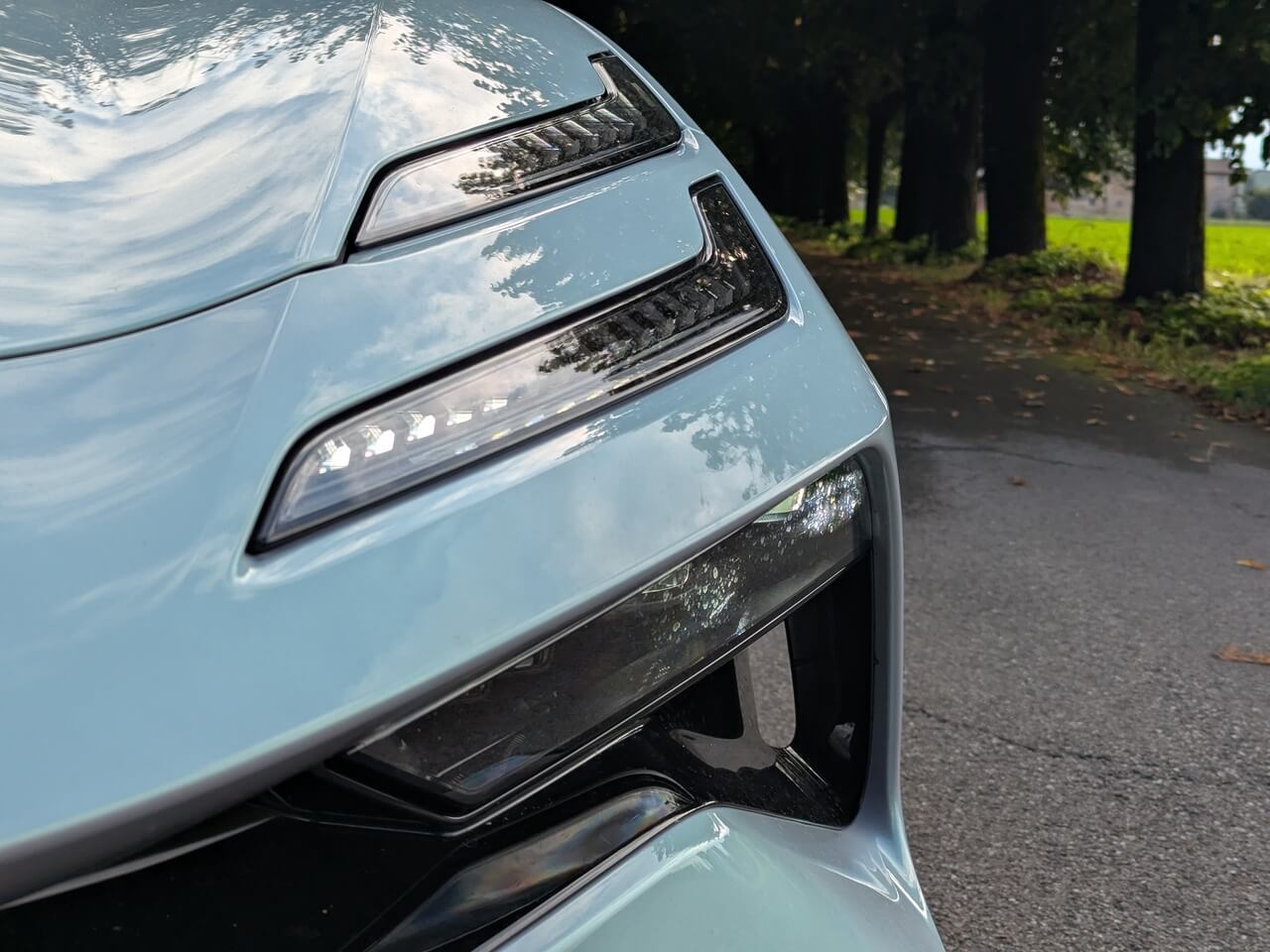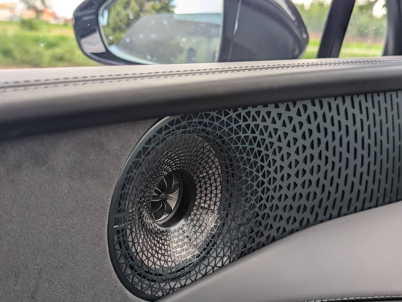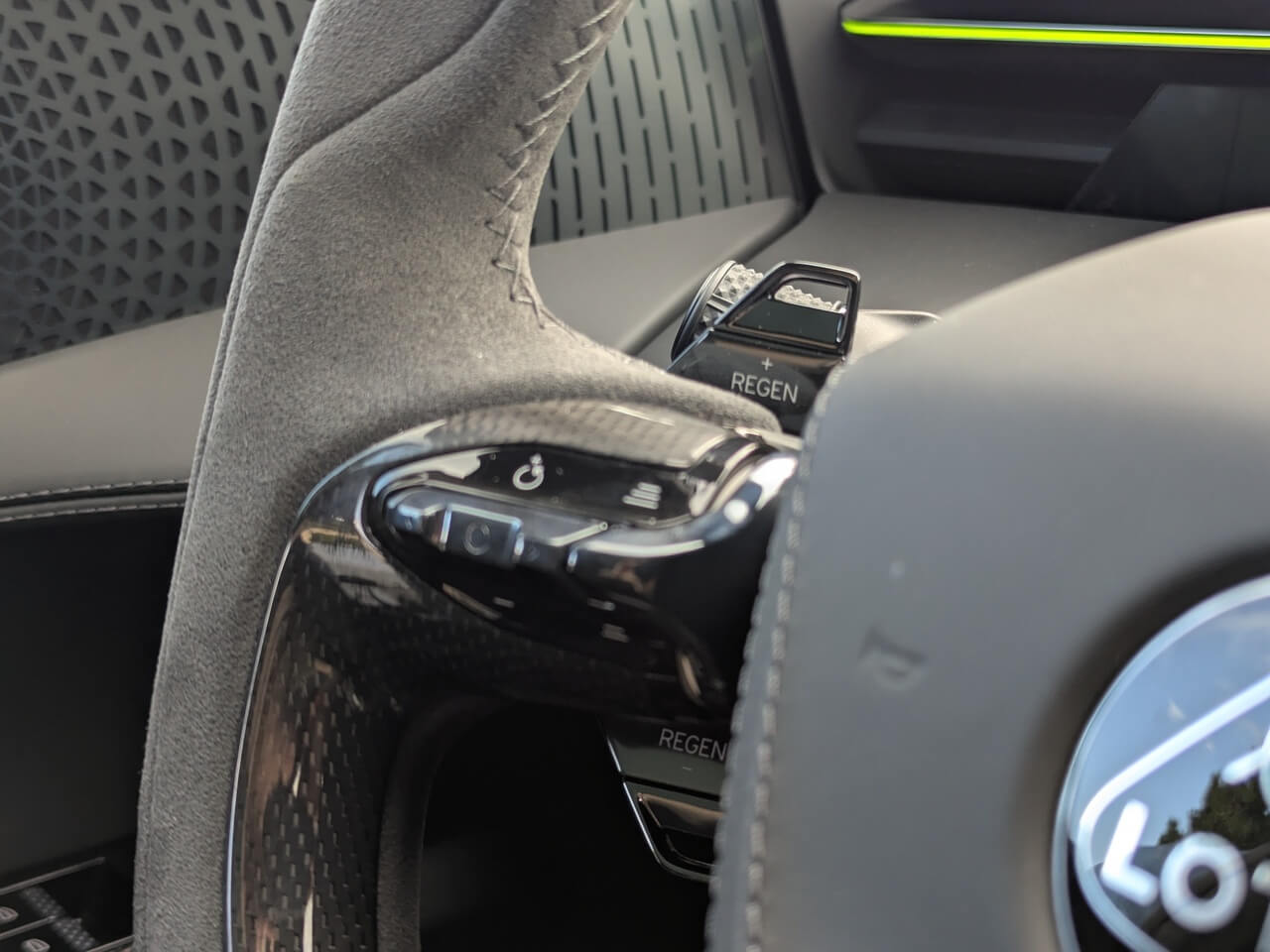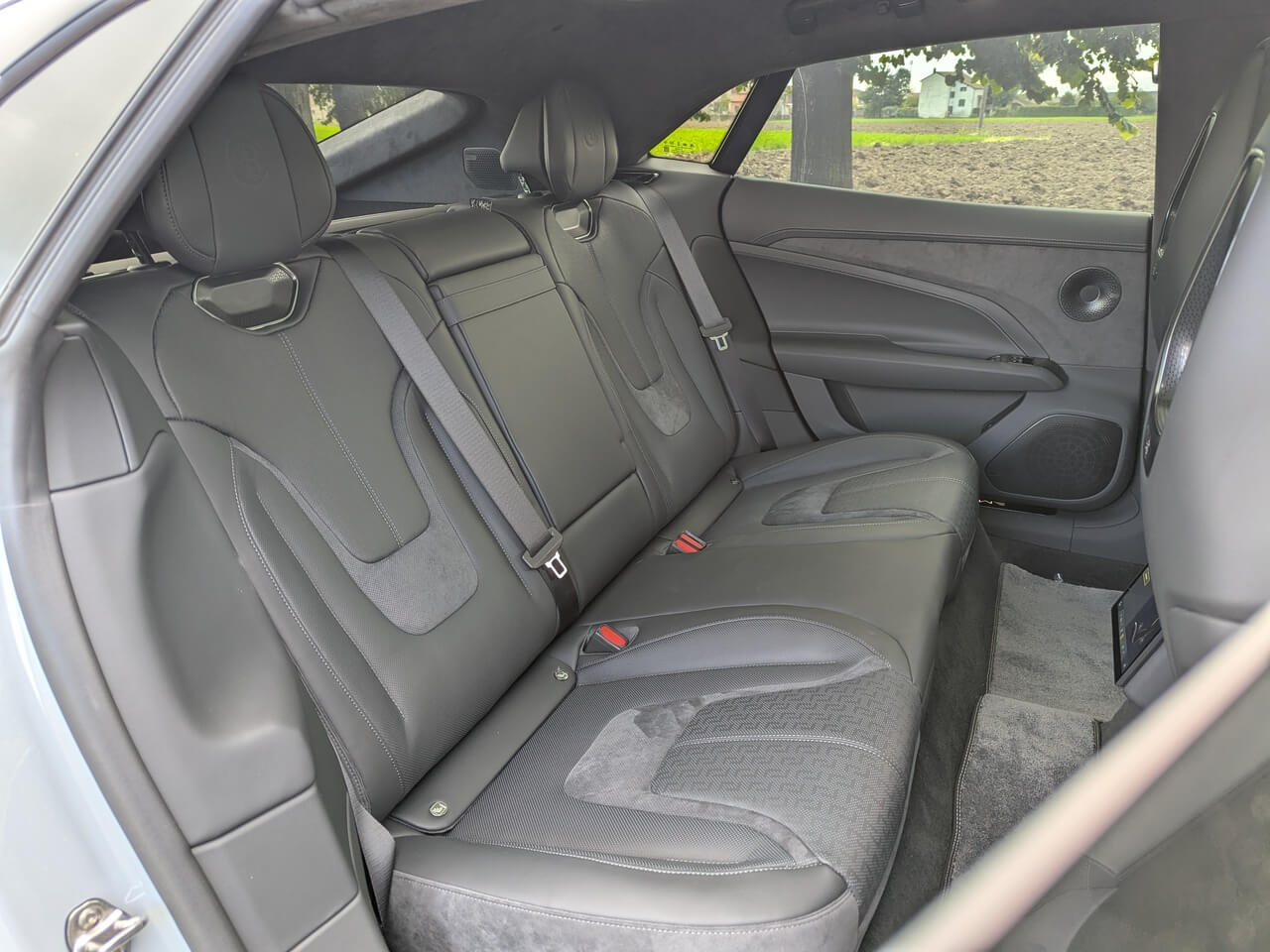 Serienmäßig ist Weiß als Außenfarbe verfügbar. Darüber hinaus bietet Lotus mehrere Sonderlackierungen mit Aufpreisen zwischen 1.550 und 2.250 Euro, darunter auch das Boreal-Grau des Testwagens. Optisch lässt sich der Emeya zusätzlich über verschiedene Felgendesigns individualisieren. Die glanzschwarzen Anbauteile sind optional auch in Carbon erhältlich. Außen gibt es zudem LED-Matrix-Scheinwerfer mit adaptivem Fahrlicht, Soft-Close-Türen, eine elektrische Heckklappe sowie ein Glasdach.