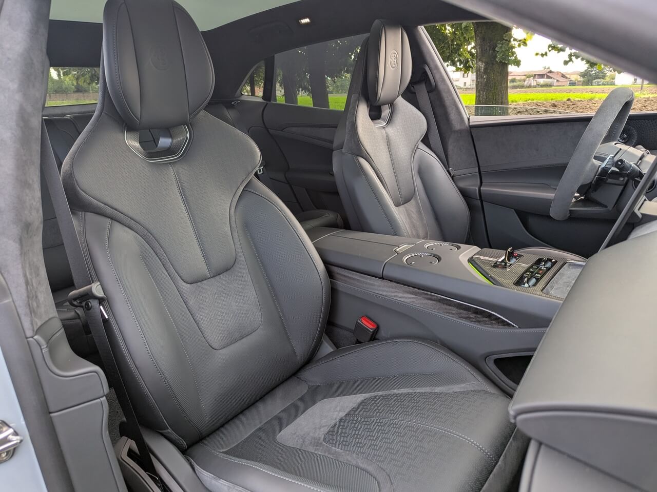 Alcantara, Carbon-Dekore und eine klare Linienführung unterstreichen den sportlichen Anspruch. Der Materialmix wirkt stimmig und hochwertig.