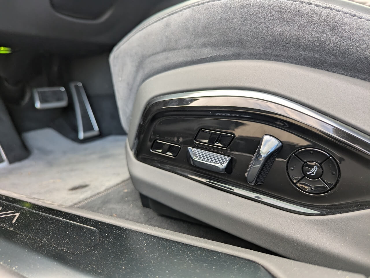 Die Sportsitze bieten hervorragenden Seitenhalt und hohen Langstreckenkomfort. Elektrische Verstellung, Memoryfunktion, Sitzheizung, Belüftung und Massage sind an Bord und lassen sich über das Zentraldisplay steuern. Die schmale Kontur sorgt für eine enge Verbindung zum Fahrzeug.