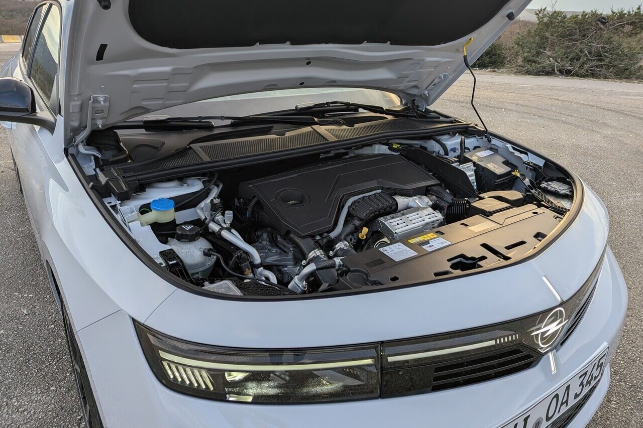 Beim Antrieb setzt Opel auf einen 48-Volt-Mildhybrid mit einer Lithium-Ionen-Batterie. Die kleine Batterie dient zur Unterstützung des Antriebs und ist bewusst kompakt dimensioniert. Sie kann nicht extern geladen werden. Bei niedrigen Geschwindigkeiten sind kurze elektrische Fahranteile möglich, in der Praxis meist über sehr kurze Distanzen von bis zu etwa einem Kilometer. Im Alltag arbeitet das System jedoch überwiegend unterstützend im Hintergrund.