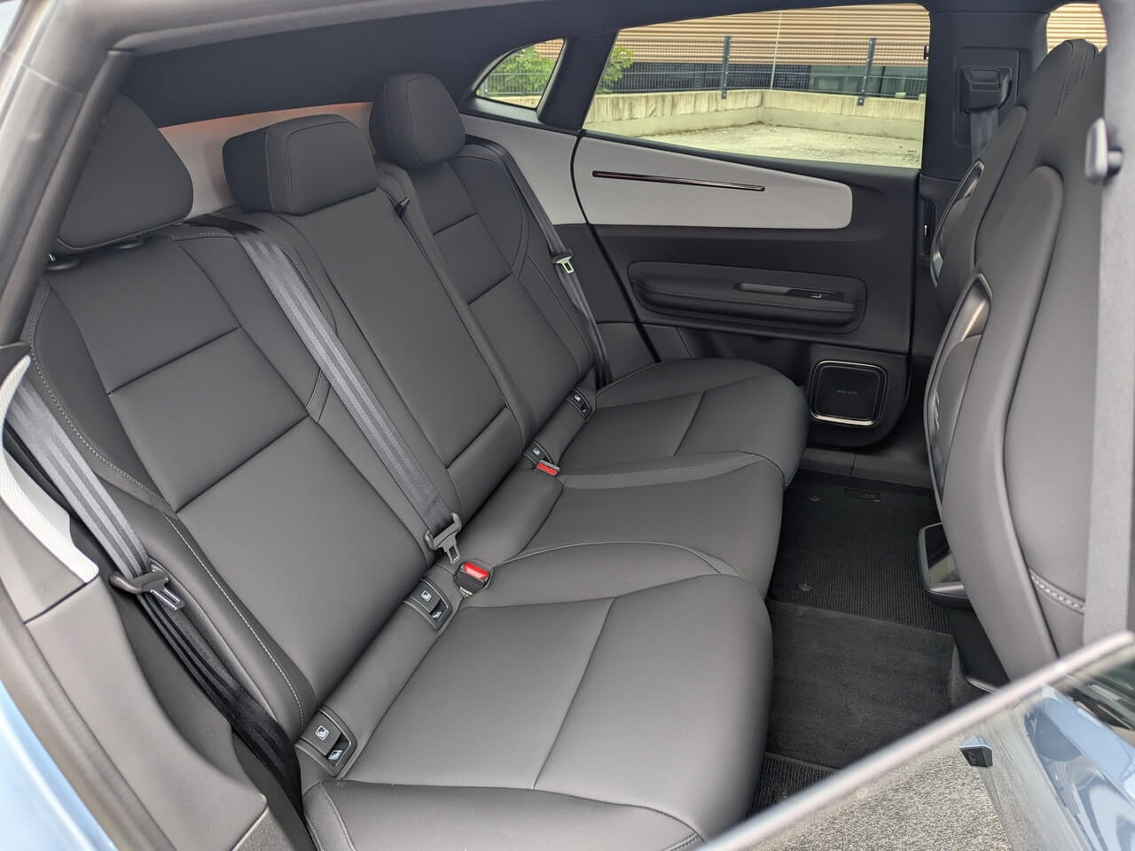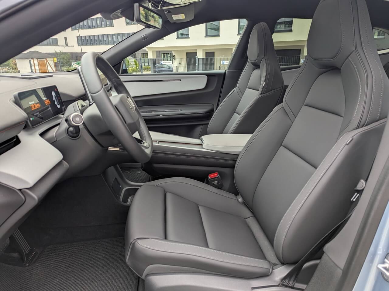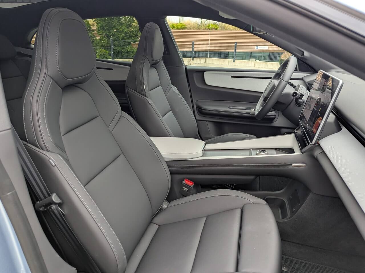 Die vorderen Sitze im Polestar 4 lassen sich vielfältig elektrisch verstellen und verfügen über eine ausziehbare Oberschenkelauflage. Sitzflächen sowie Rücken- und Schulterbereich sind großzügig dimensioniert und auch für größere Personen sehr bequem. Praktisch: Die Komfort-Einstiegsfunktion erleichtert das Einsteigen, und die Sitzheizung lässt sich bequem über das Zentraldisplay steuern.